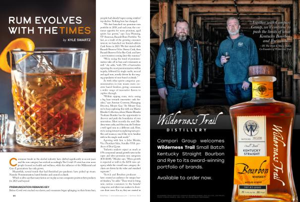 “ We ’ re seeing the trend of premiumization take off in bars and restaurants as well ,” she adds , “ with 72 % of bartenders reporting the most premiumization within tequila , followed by single malts , mezcal and aged rum , mostly driven by the surging popularity of rum-based cocktails .”