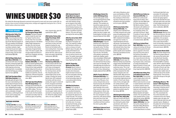 ( 94) Stangeland Eola-Amity Hills Pinot Noir 2022( OR). Silky and smooth with flavors of raspberry, cherry and black tea enticing the palate. Bold yet delicate, with notes of cinnamon and dusty spices emerging on the long, sexy finish.($ 24.99)