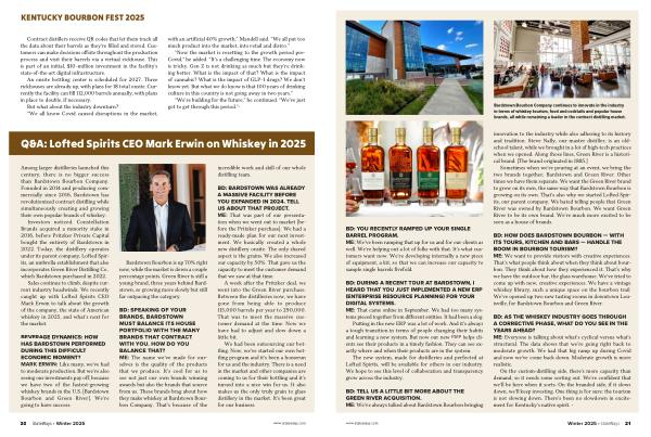 On the custom-distilling side, there’ s more capacity than demand, so it needs some sorting out. We’ re confident that we’ ll be here when it sorts. On the branded side, if it slows down, we’ ll keep investing. One thing is for sure: the tourism is not slowing down. There’ s been no slowdown in excitement for Kentucky’ s native spirit. • www. stateways. com Winter 2025 • StateWays 21